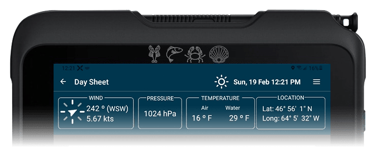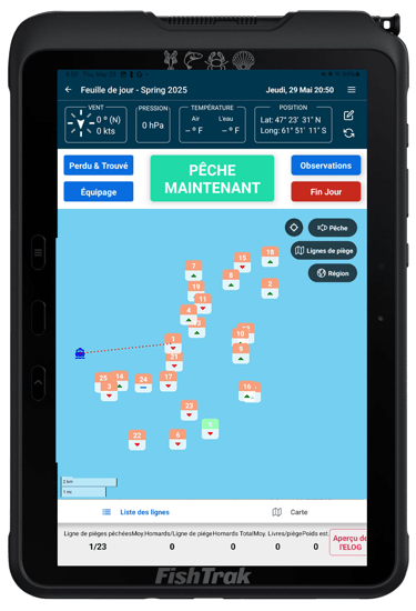 En quelques secondes depuis la tablette dans la timonerie, vous consignez les totaux de prise, la performance des casiers, l’endroit, la profondeur, l’appât, la météo, pis l’état du fond.