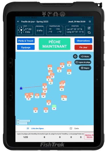 Le FishTrak Catch Plotter suit chaque ligne, chaque casier pis chaque levée pour que vous puissiez poser vos engins de demain là où ça a payé aujourd’hui — sans scribbler ni devinettes.